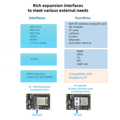ऑनबोर्ड गिगाबिट इथरनेट पोर्ट, आरजीएमआयआय, यूएसबी 3.0/2.0, मिनी पीसीएलई, मिनी एचडीएमआय, एमआयपीआय स्क्रीन आणि एमआयपीआय कॅमेरा आणि इतर परिघीय इंटरफेस, अधिक विकासाच्या गरजा भागविण्यासाठी 40 पिन न वापरलेले पिन, समृद्ध विस्तार इंटरफेस!